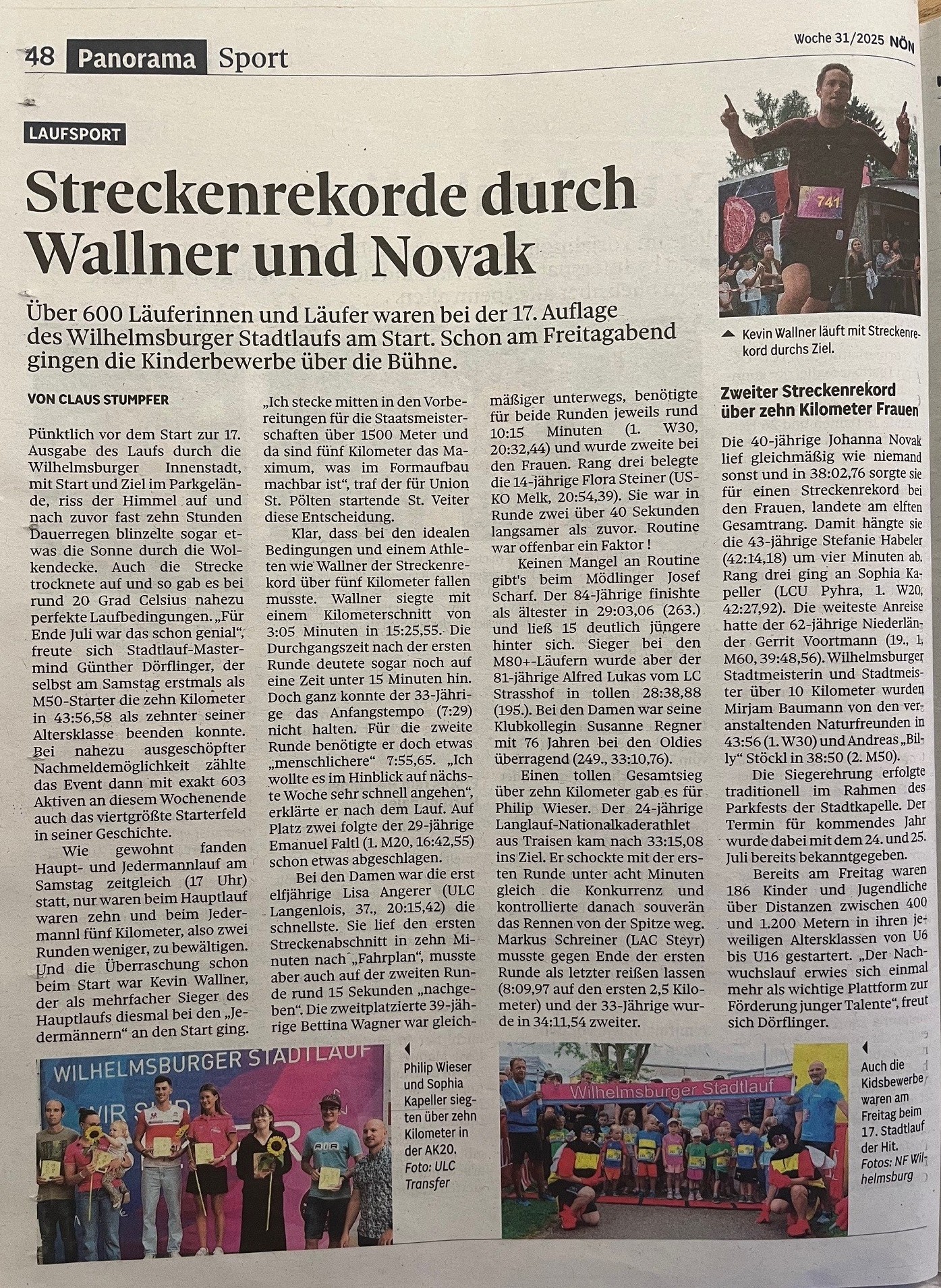 Kevin Wallner dominierte den Lauf über die 10 km und konnte einen klaren Tagessieg feiern. Bei den Damen krönte Sabine Pointner ihre konstant starken Leistungen ebenfalls mit dem Tagessieg über 10 km.
